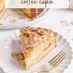 Our light and fluffy almond coffee cake is made with pure almond extract, sour cream and covered with sliced almonds and a homemade cinnamon streusel. The fluffy layers have a ribbon of almond pastry filling running through the middle. This is truly one of the best coffee cakes that you will ever make. This sweet almond coffee cake is perfect for a lazy weekend morning, a special occasion and the perfect recipe for your next brunch or afternoon tea.